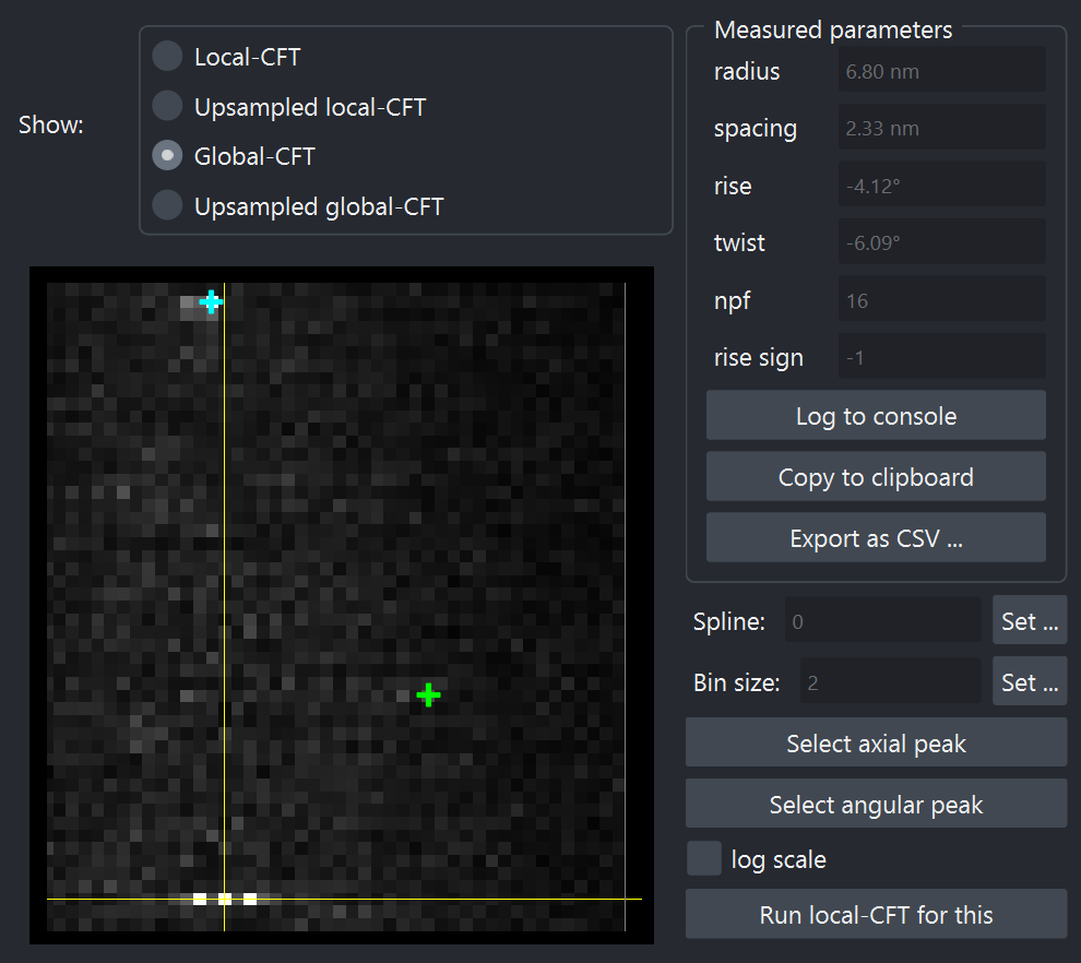 . - By default, the global-CFT power spectrum of your structure is shown in the canvas. If you think the resolution of power spectrum is low, you can switch to "Upsampled global-CFT" mode.
